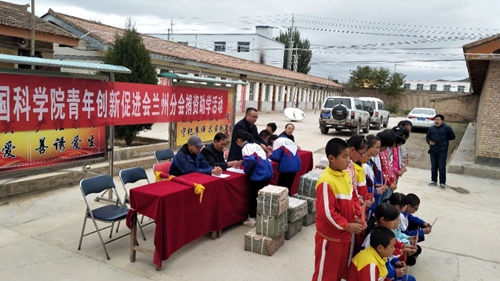 截至10月12日,来自中国科学院10余家单位的60余位青年科学家及青促会西北研究院小组纷纷捐款。善款全部用于甘肃省“高考状元县”、国家级贫困县会宁县土门岘镇初级中学(简称“土门中学”)三好学生奖学金和贫困生助学金的发放。西北研究院小组出资9500元捐赠初中课外读物图书618册,兰州大学土木工程与力学学院张帆宇捐赠图书30册,共同为土门中学搭建了“中国科学院西北生态环境资源研究院青年创新促进会图书屋”。